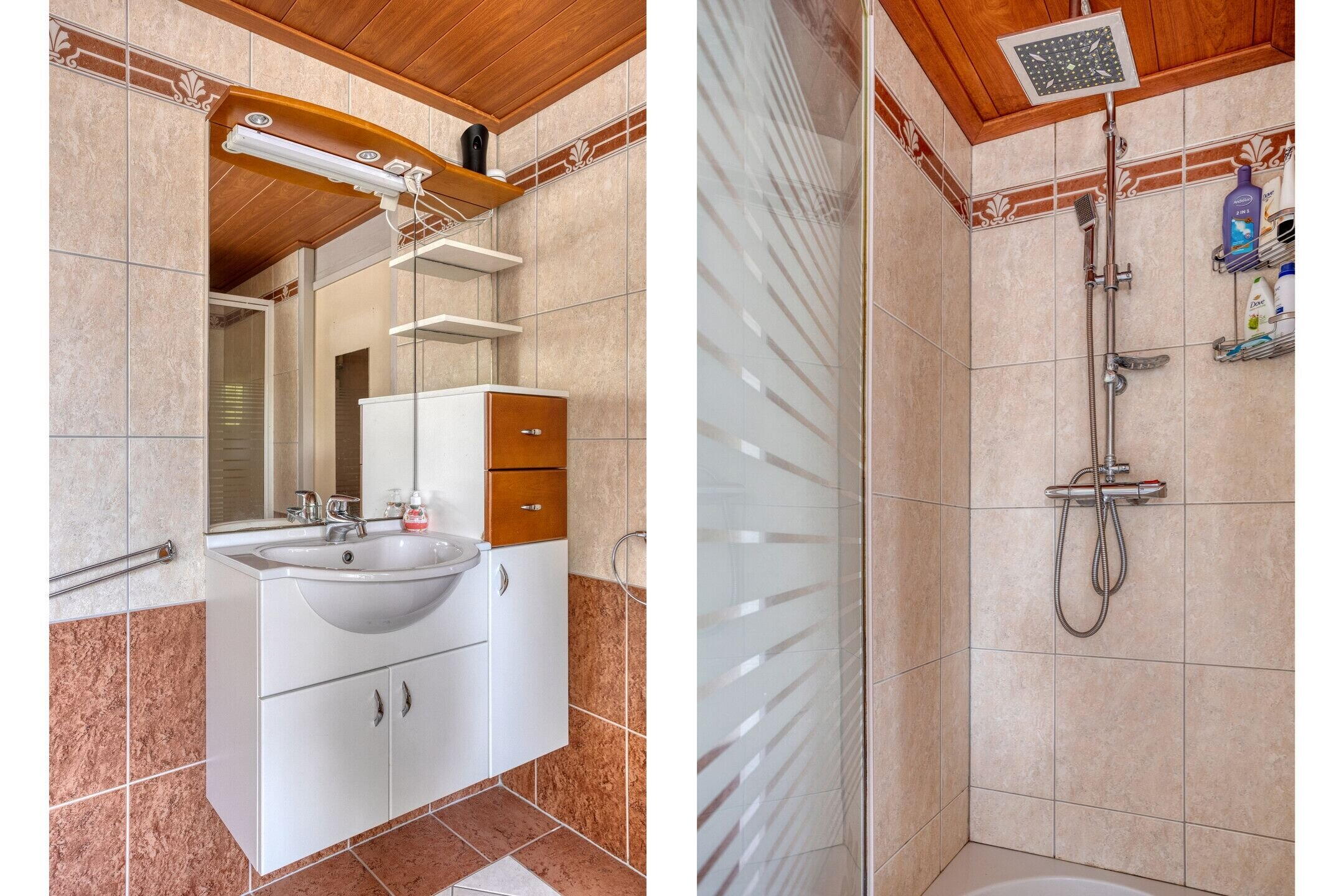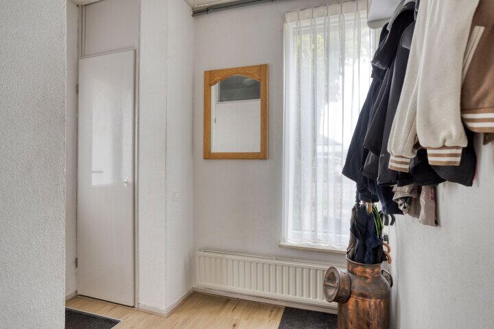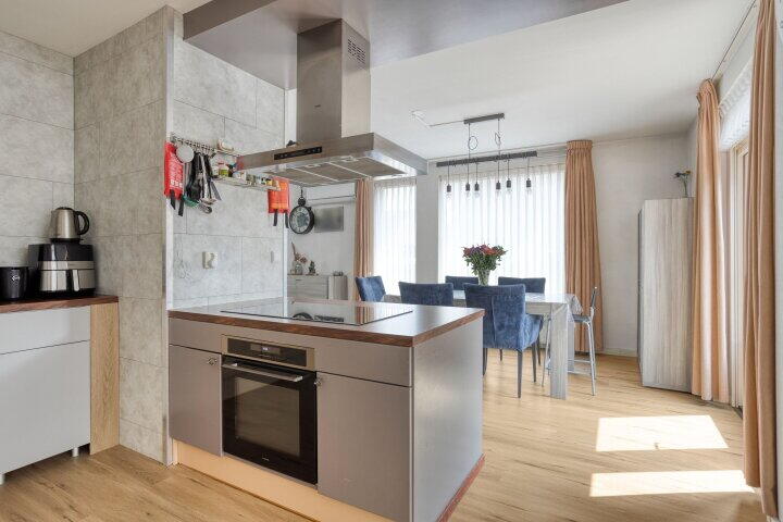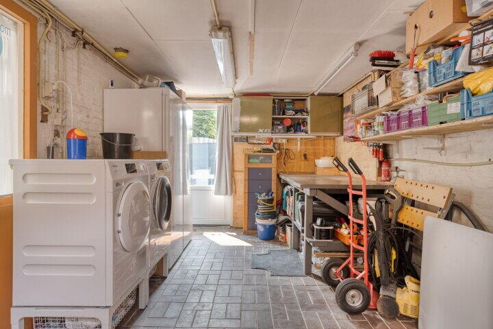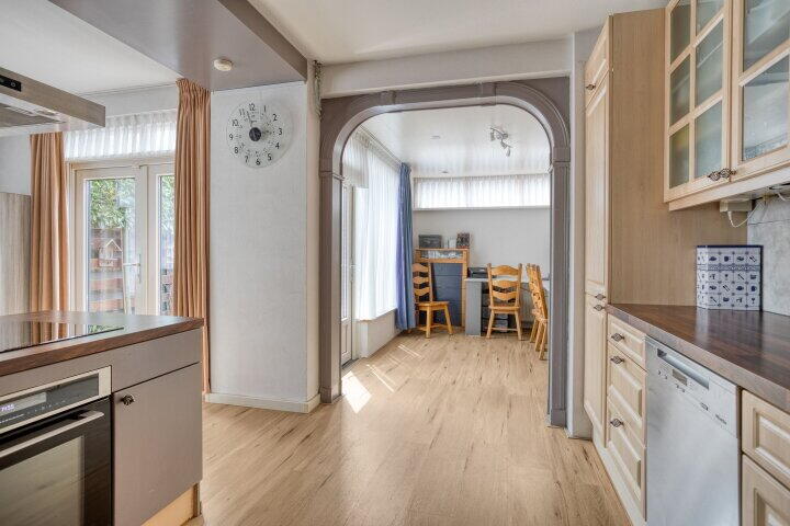 Entree met hal, meterkast en modern toilet. Doorzonwoonkamer met veel lichtinval en openslaande deuren naar de tuin. De moderne u-vormige keuken (2024) is voorzien van inbouwapparatuur zoals een combi-magnetron, koelkast, vaatwasser en inductiekookplaat. Vanuit de keuken is er toegang tot een praktische bijkeuken of speel-/werkkamer, ook te gebruiken als slaapkamer en daardoor levensloopbestendig te maken. Deze ruimte biedt op haar beurt toegang tot de achtertuin én de extra ruime garage (9,95 x 3,21 m) met lichtkoepel, wasmachineaansluiting, elektrische sectionaldeur en deur naar de tuin.